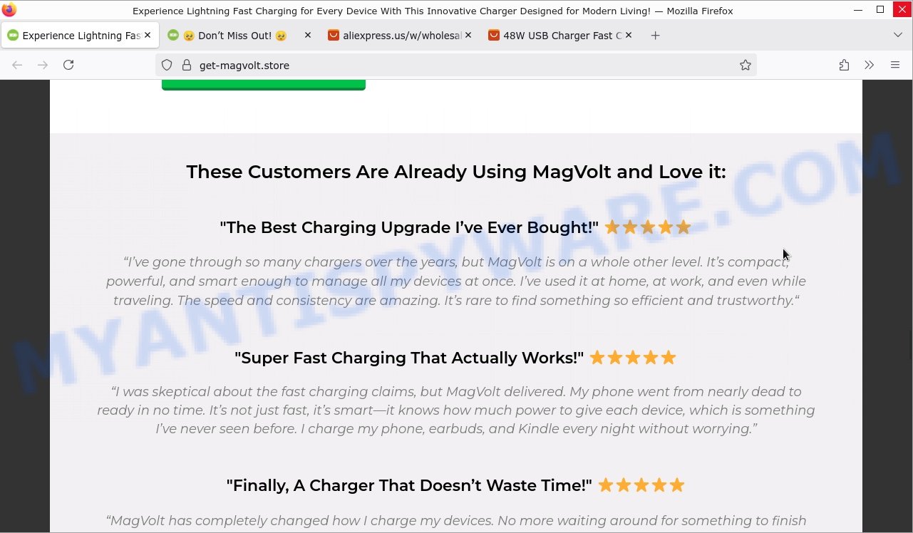 Bottom Line: It is advisable to approach MagVolt Charger with skepticism. Before investing in tech accessories that claim revolutionary performance and safety features, verify product authenticity, seek trusted reviews, and compare with established brands. If an offer seems too good or too pressurized, it often signals a risk of overhyped or substandard merchandise. Exercise prudence to avoid falling victim to potentially deceptive marketing schemes.