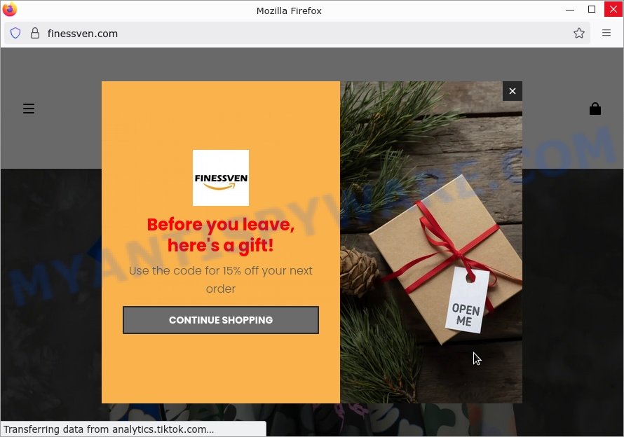 The ads direct you to Finessven.com, a fake online store that looks very convincing. It’s designed to appear as a legitimate shopping destination, fooling you into thinking you’ve found an amazing deal.