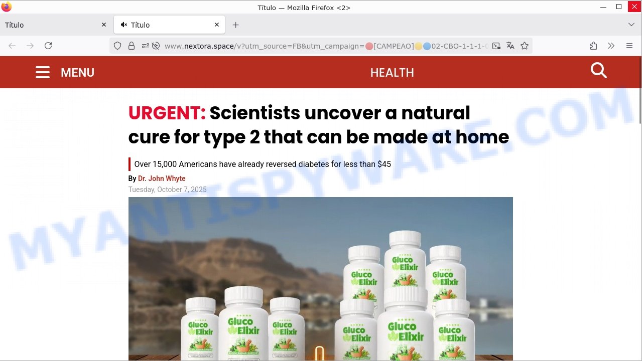 Gluco Elixir is — a product falsely marketed as a miracle cure that can reverse type 2 diabetes quickly and effortlessly. This scam starts with flashy ads on Facebook and Instagram, funneling victims to lengthy video presentations hosted on suspicious sites like vitalinsightzone.online and nextora.space. These pages churn out sensational headlines claiming a “natural cure” discovered by scientists, promising dramatic results for less than $45.