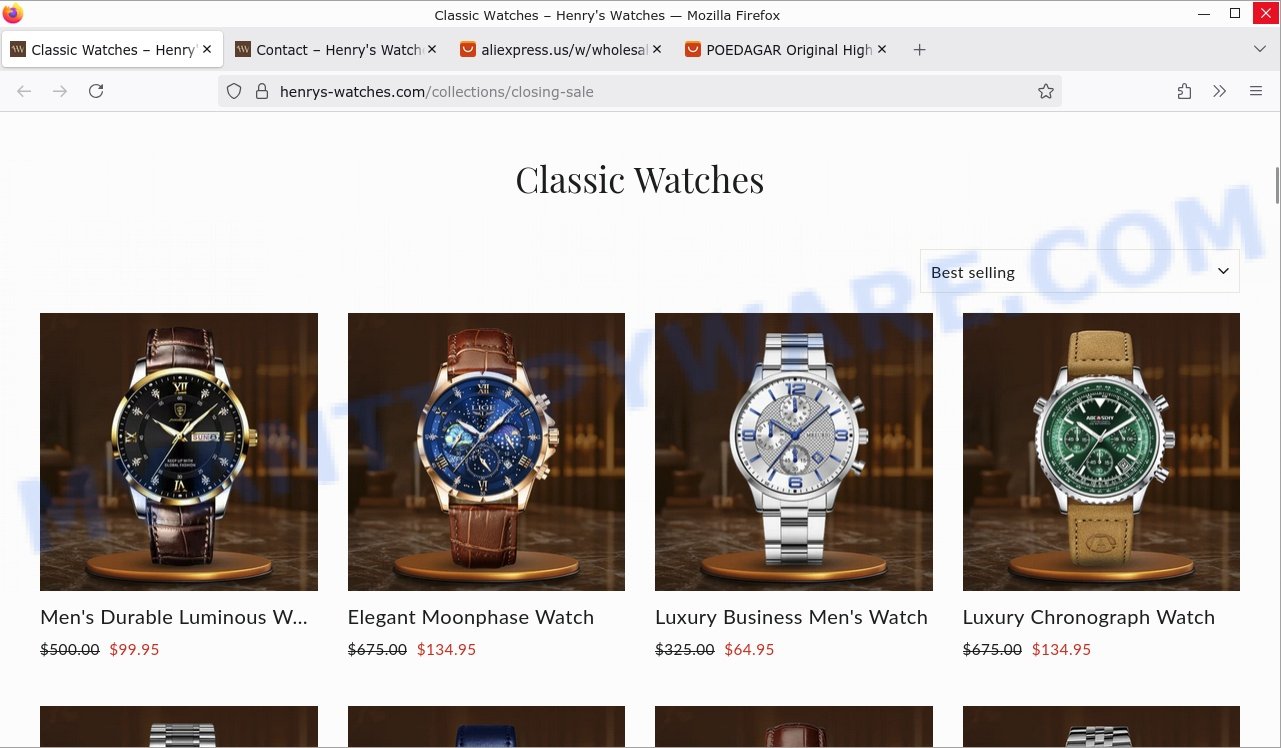 In summary, the Henrys-Watches.com Closure Sale 🕰️ scam deceives buyers by fabricating a legacy of quality craftsmanship and a closing-down sale to promote low-quality, mass-produced watches at inflated prices under the guise of luxury. The scammers use fake websites, aggressive discounts, fabricated reviews, and misleading guarantees to build illusory trust. Unsuspecting customers end up with cheap watches that soon fail, poor customer service, and lost money, serving as a cautionary tale to thoroughly research and verify watch sellers before purchase.