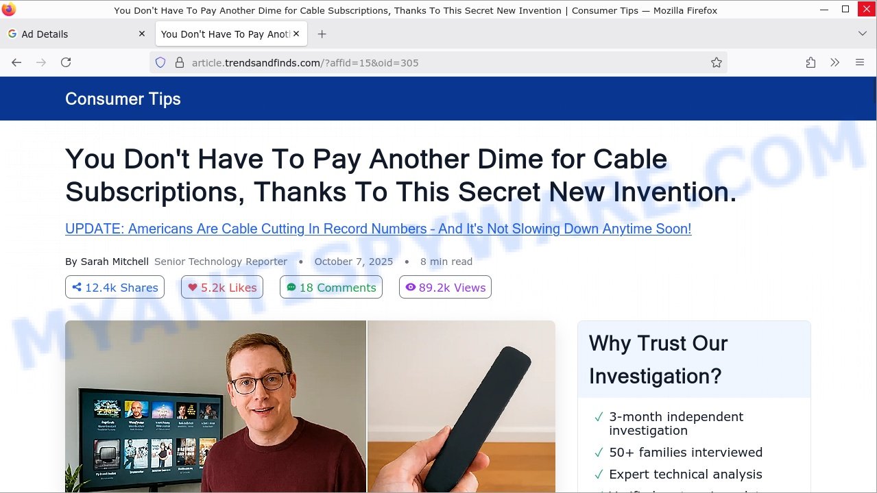 UltraLink is heavily promoted on platforms like Google, YouTube, Facebook, TikTok, and Instagram using enticing claims: “Get 100+ FREE channels with no monthly fees” and “Cut your cable bills forever”. Ads suggest it can replace cable subscriptions and streaming services completely, which is false.