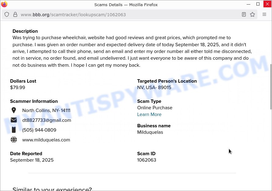 | Scam websites (example) | overloom.shop, milduquelas.com |
