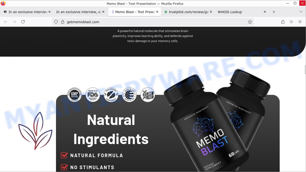 - 🔒 Misleading Website Claims: MemoBlast websites, such as memory-labs.us and getmemoblast.com, falsely claim FDA approval and cite fake scientific research. The purported “Harvard study” on memory damage does not exist, and reputable institutions have no affiliation with MemoBlast.