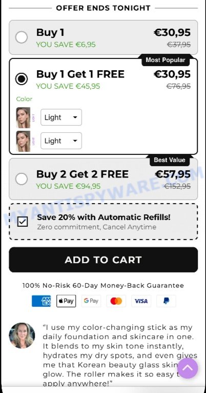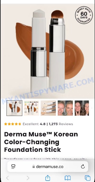 The Derma Muse Korean Color-Changing Foundation Stick appears to be a questionable product and raises several red flags typical of cosmetic scams. Despite impressive marketing claims and glowing website testimonials, there is little credible evidence supporting the effectiveness of its adaptive pigment technology or skincare benefits. The product’s promotional materials heavily rely on dramatic before-and-after photos without accompanying real-time usage videos, and the website flaunts a high customer satisfaction rating that cannot be verified on independent platforms like Trustpilot.