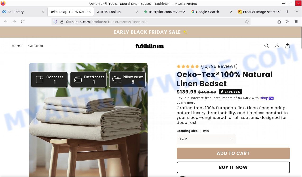 The Faith Linen Sheets are a questionable product, heavily relying on fake reviews, misleading claims, and deceptive marketing tactics to suggest authenticity and luxury that aren’t substantiated. Despite advertising premium “100% European flax linen” with OEKO-TEX certification and eco-friendly benefits, there is no credible proof supporting these assertions.
