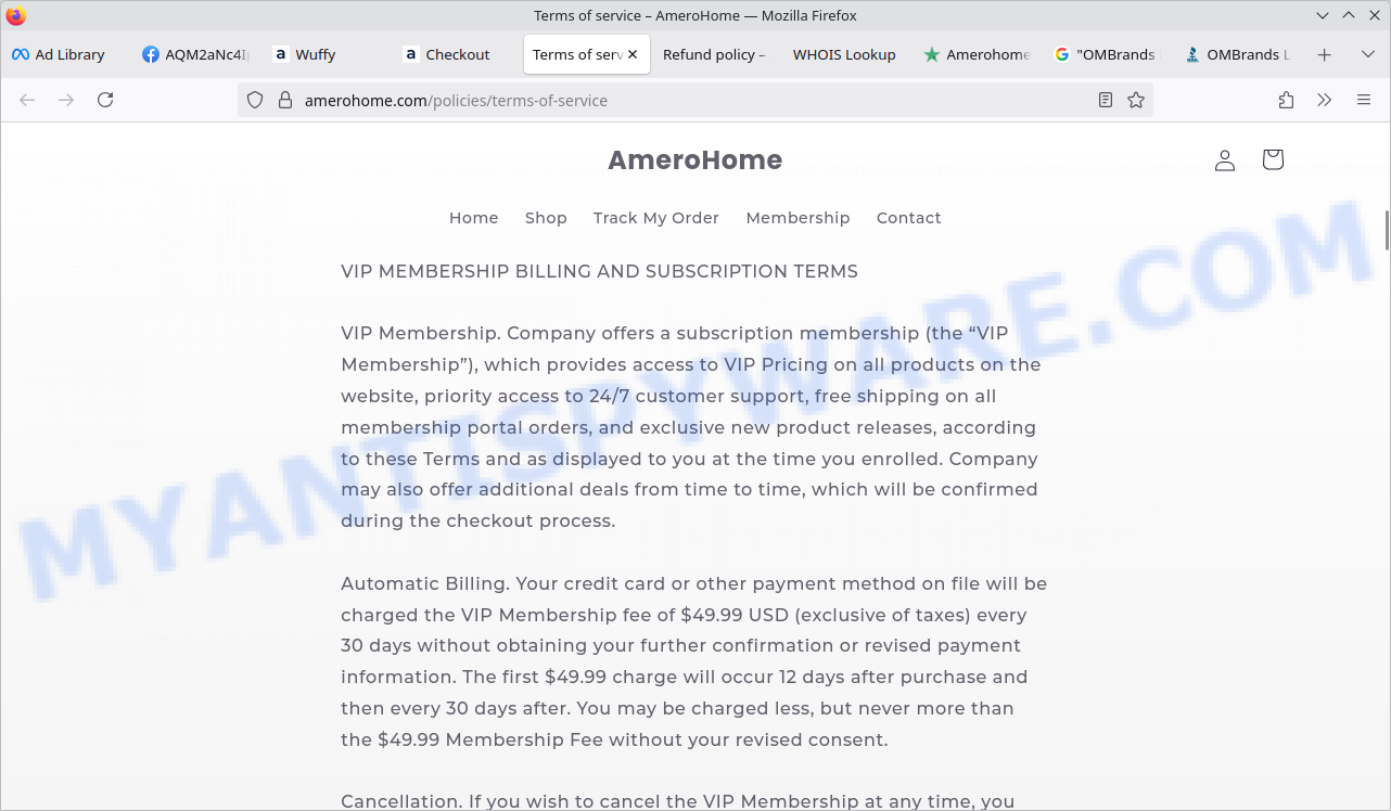 Here’s the crux: The entire setup relies on fake ads, misleading “customer reviews”, and counterfeit trust signals to lure unsuspecting shoppers. Slick Facebook ads lead to generic lifestyle articles peppered with fabricated TrustScores and glowing testimonials—none of which can be verified. The checkout site, AmeroHome.com, hides sneaky terms enrolling buyers into recurring $49.99 “VIP memberships” that begin charging shortly after purchase, with refund policies that only offer store credit. There’s no actual AI, no verified brand behind Wuffy, and plenty of frustrated victims reporting unauthorized charges and missing products.