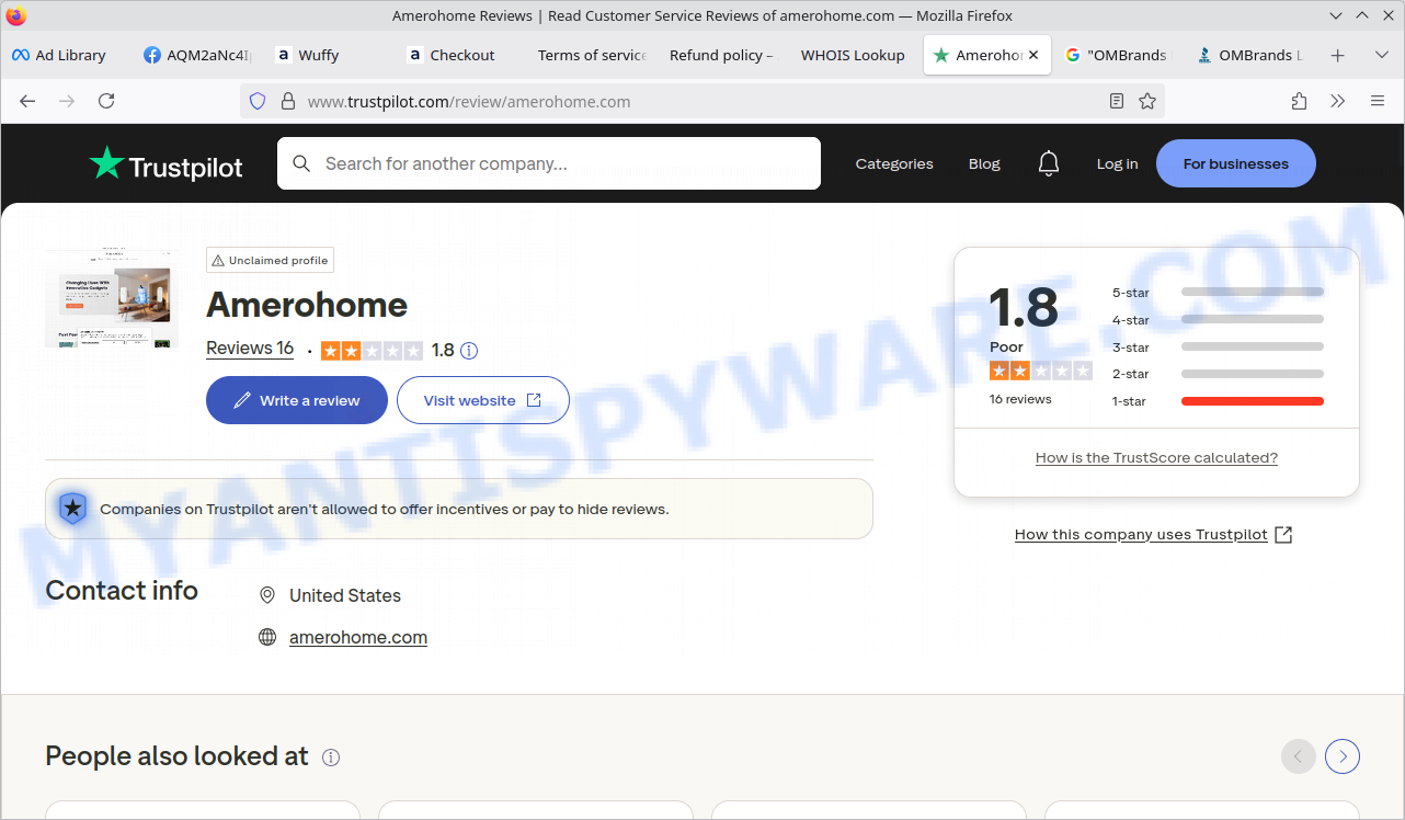Checkout pages on shop.amerohome.com are straightforward and encourage quick purchases, but use payment methods that offer little buyer protection. The “money-back guarantee” is misleading, with refunds only issued as store credit.