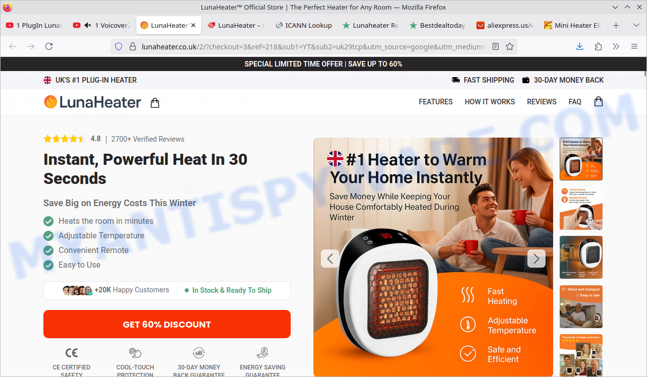 The core deception? Promising revolutionary energy savings while delivering nothing but a generic, low-powered heater — or worse, no product at all. LunaHeater’s “official” sites, lunaheater.co.uk and bestdealtoday.org, flood visitors with bogus ratings, staged testimonials, and fake scarcity to pressure quick purchases, then vanish when complaints pile up. If you’re tempted by claims of “heats 900 sq ft in minutes” and “90% less energy”, be warned: these notions violate basic science and echo a growing list of online heat scams. Don’t fall for the hype — protect your wallet and seek trusted, proven solutions instead.