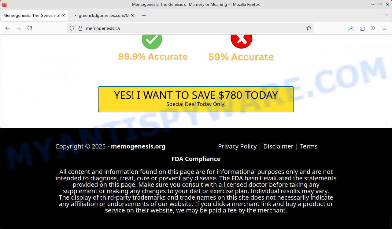 Memo Genius is marketed with phony discounts and countdown timers to create urgency. Claims like “One-time purchase, no auto-ship” and “60-day money-back guarantee” are used to reassure victims but are rarely honored.