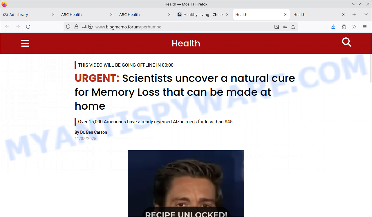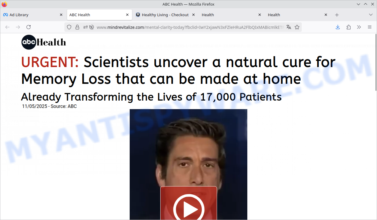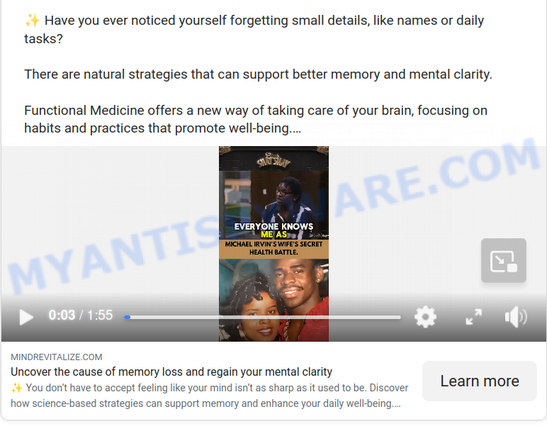 The scam starts with social media posts and video ads asking if the viewer forgets daily details or names, promising “natural strategies for better memory and mental clarity”. The ads mention “Functional Medicine” and show short clips, such as one featuring a well-known sports figure’s spouse, to appear credible. Clicking the ad directs users to mindrevitalize.com, which pretends to be an article from “ABC Health”.