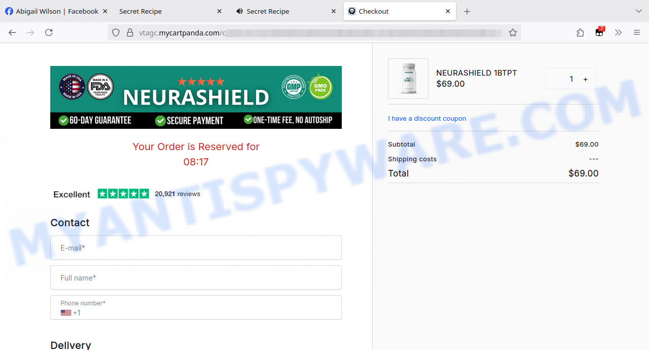 Reviews The checkout page shows “Excellent 20,921 reviews”, but these are just pictures, not real feedback. The website includes fake comments and social reactions to make the product look popular and trustworthy. Negative (Fabricated reviews and social proof)