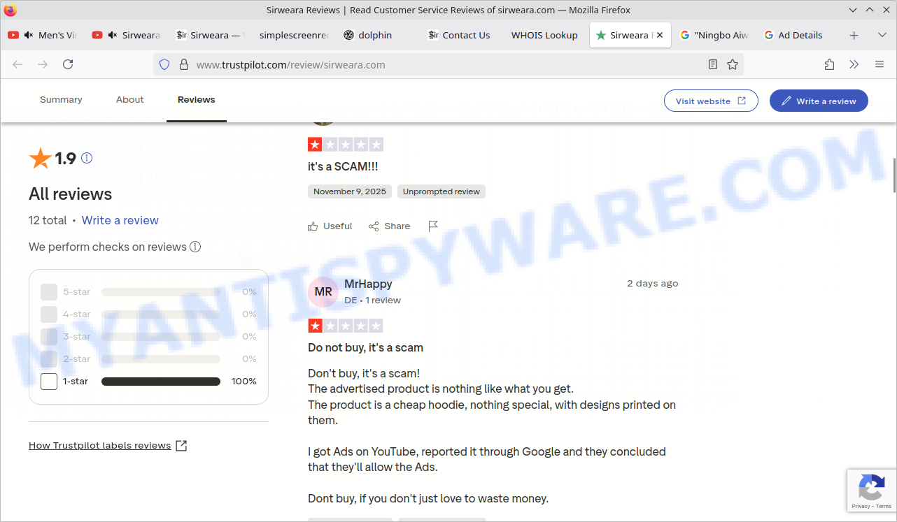 Sirweara’s site lacks authentic customer feedback. When checking third-party review sites like Trustpilot, the product holds overwhelmingly negative one-star reviews citing poor quality and misrepresentation, indicating a broad customer dissatisfaction.