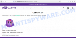 | Company Transparency | Legitimate company details are missing or fake on the scam site. The true Candy Warehouse website is candywarehouse.com, unrelated to this scam site. | Negative (No real company information; imposter site) |