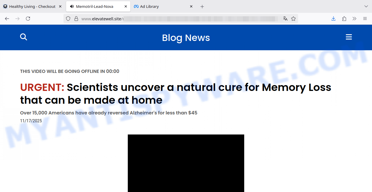 Scammers behind MemoTril begin by launching targeted ads on social media platforms such as Facebook, often featuring video of elderly individuals alongside alarming messages about early dementia signs. These ads promise miraculous results—rapid memory restoration, reversal of Alzheimer’s, and mental clarity improvements—using fear-based hooks like “five common words seniors mispronounce years before memory loss”. They rely heavily on fake testimonials, sensational claims, and pseudo-scientific jargon to attract vulnerable people seeking quick fixes for memory problems.