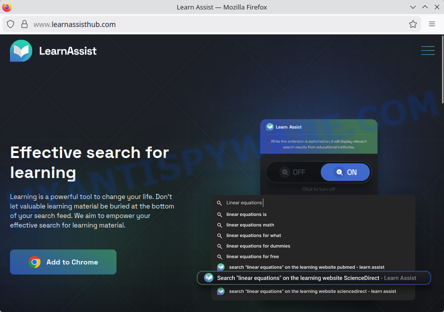 Our team has discovered LearnAssistSearch.com, a fake search engine promoted through “Learn Assist” browser extensions. These extensions modify the default search engine settings on Chrome browsers forcing the browser to use LearnAssistSearch.com for all search queries.