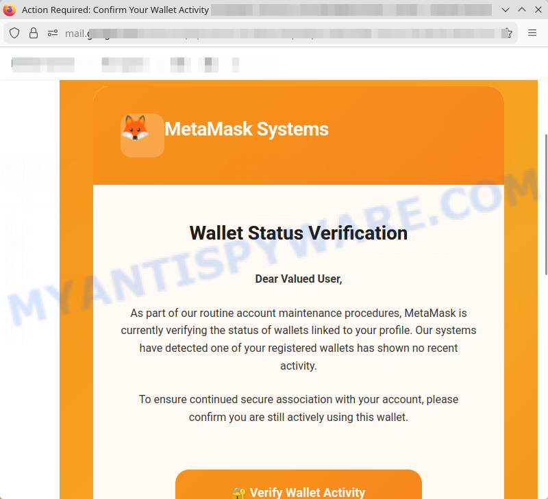 | Name | MetaMask Wallet Status Verification Email Scam |