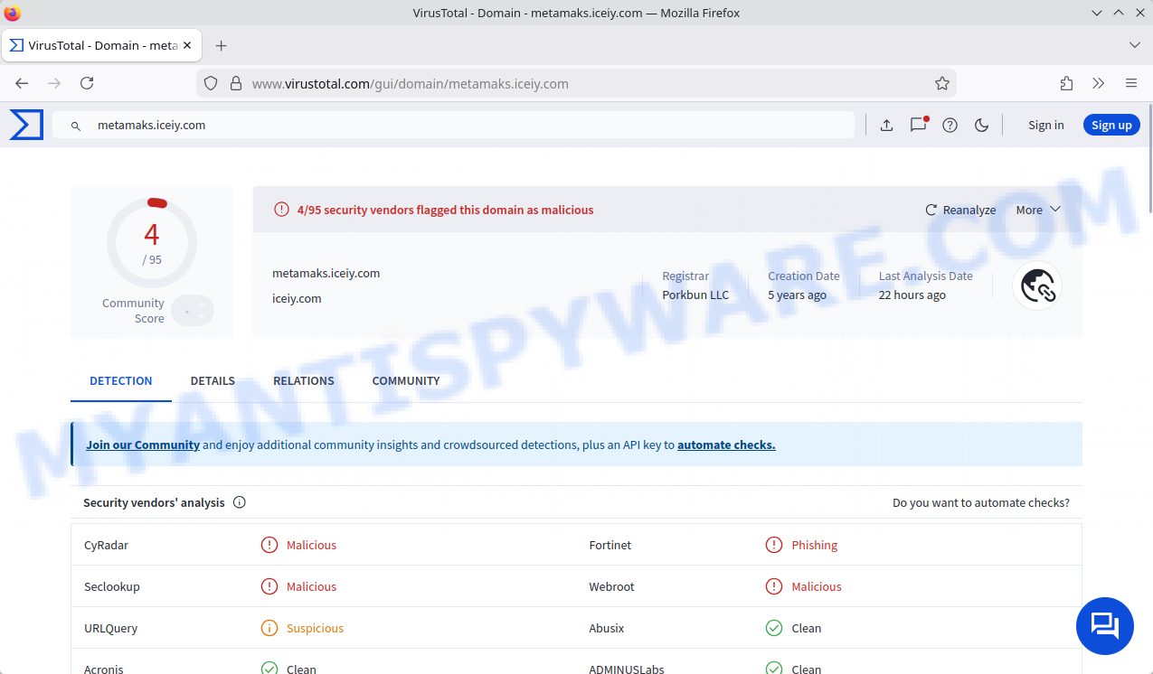 At its core, this scam exploits users’ fear of losing access to their crypto wallets by mimicking legitimate MetaMask communication and urgent security language. The link appears plausible but directs to a site flagged as dangerous by security scanners like VirusTotal.
